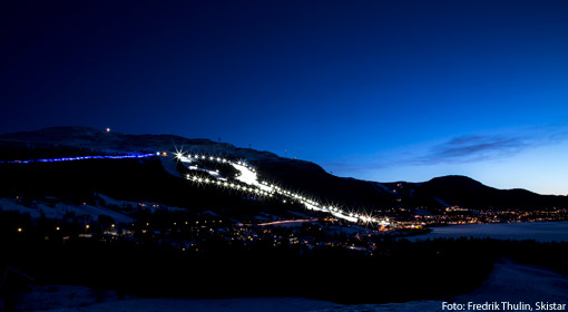 Att åka skidor i nypreparerade backar med bra belysning när det är mörkt runt